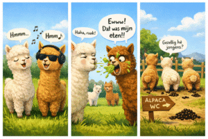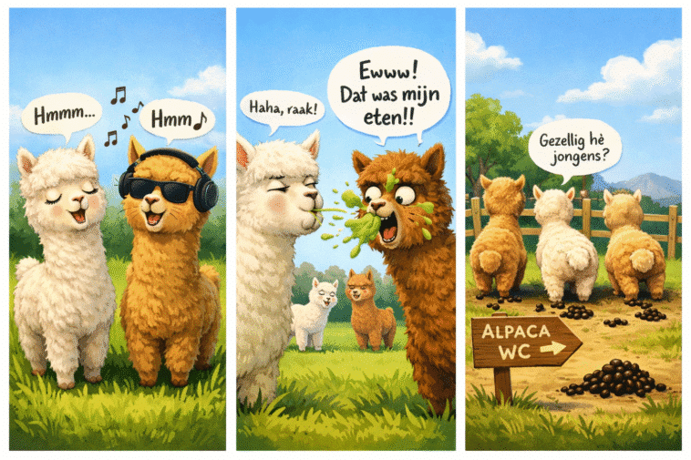 Alpaca’s hebben een vaste “toiletplek” in de wei. Dat is handig voor boeren én het is best netjes eigenlijk